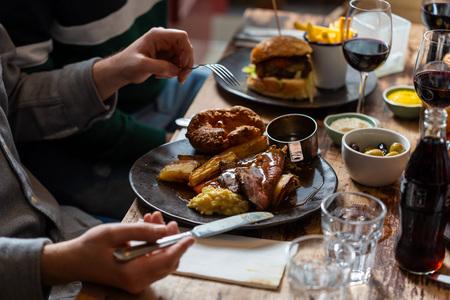 They serve a broad modern British menu featuring dishes such as burgers, steaks, Sunday roast, brunch, salads, and more, with vegan and gluten-free options often available.